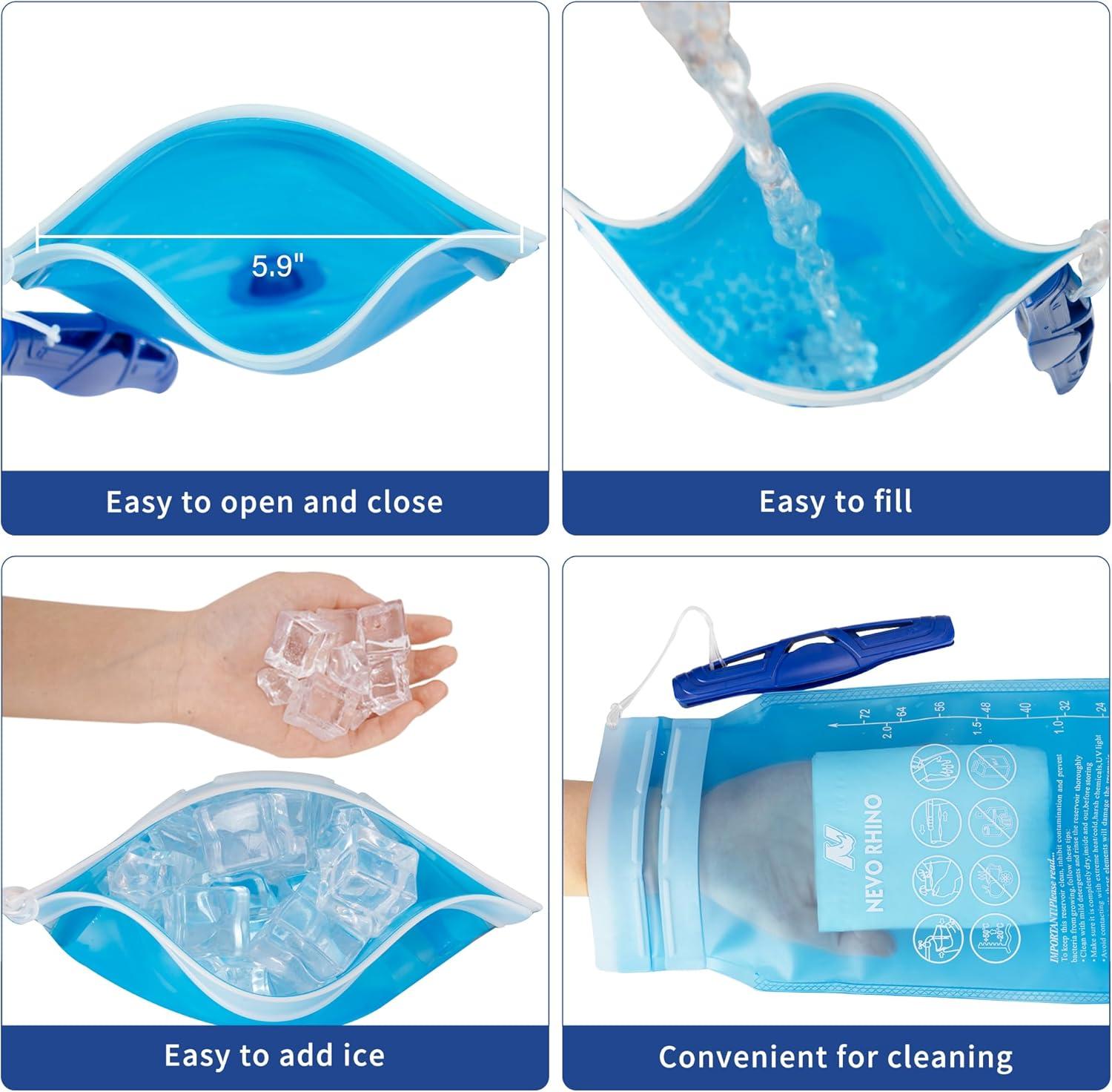 Large Opening For Easy Cleaning And Filling: The 6″ wide opening makes it easy to pour water and add ice cubes. It is also wide enough to easily access the inner hydration bladder by hand or with a bottle brush.