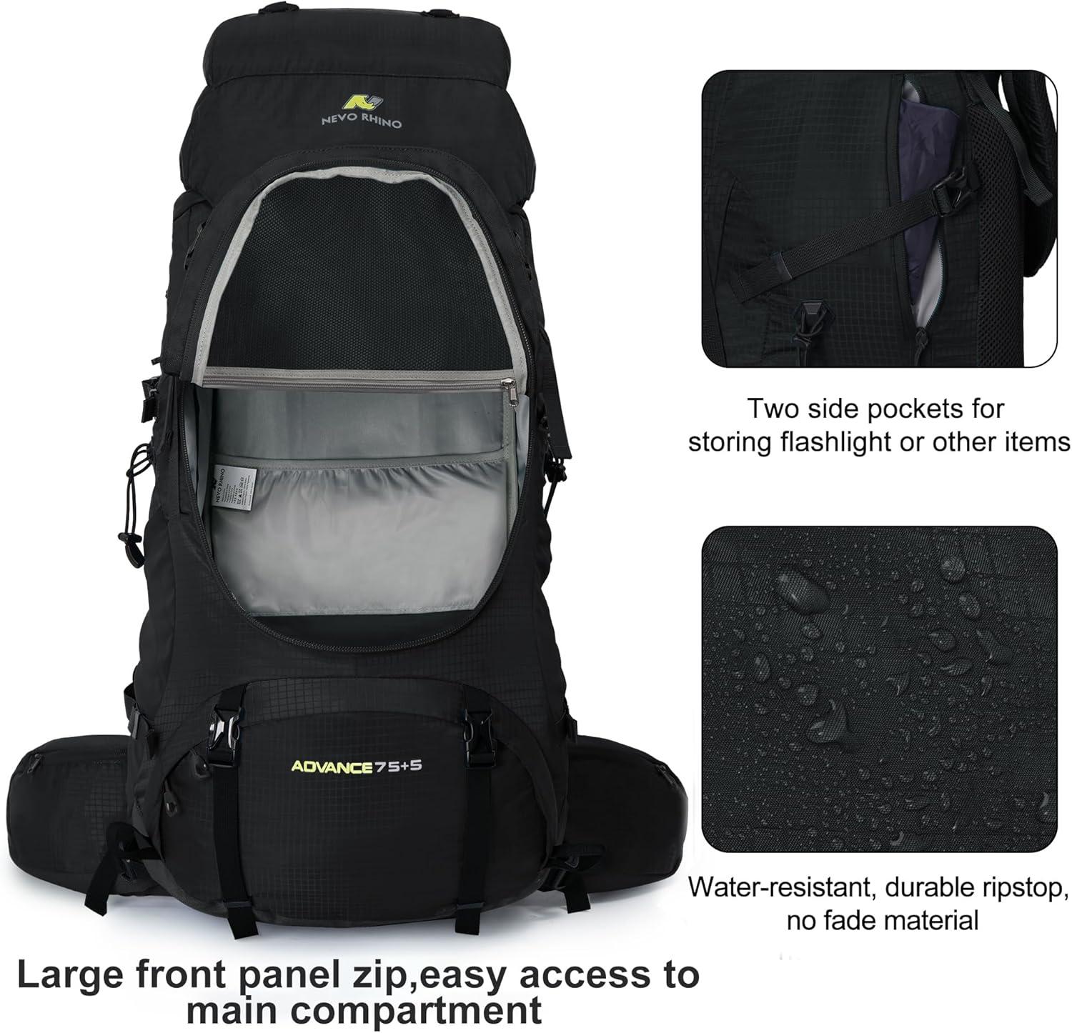 N NEVO RHINO Internal Frame Hiking Backpack 50/60/65/70/80L, Mountain Climbing Camping Backpack Daypack Waterproof Rain Cover(21 Black)